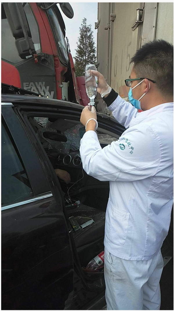 接着叶医生又为另外两辆小轿车上受伤的两位中老年患者进行了评估,发现他们暂无生命危险,只是情绪非常紧张。同济医院急救车随行医务人员立即将他们送到安全的位置。